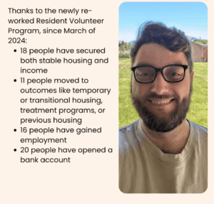 At the Poverello Center, we know that success isn’t a straight line, and that it looks different for everyone. Housing can take time, effort, and a few tries. For many guests at the Poverello Center, the Resident Volunteer (RV) program is an avenue to find employment and housing solutions.