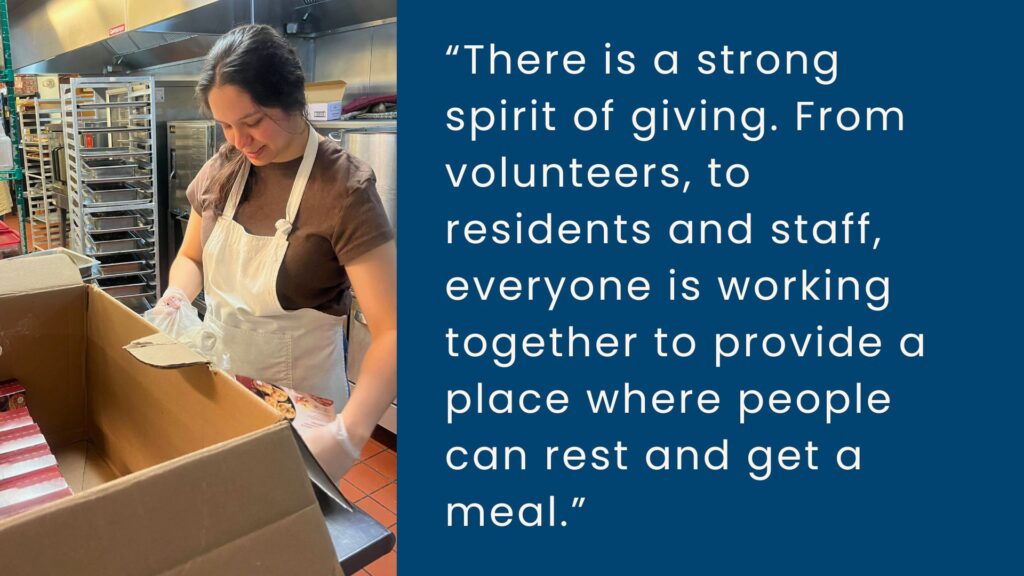 “I’ve learned how much we can help people,” she says. By just providing a bed for the night and a hot meal, Shelly believes the Pov makes a huge difference for people in our community. And the overnight shift is especially integral to the mission: “during the day, you’re always doing something, helping someone get what they need. During the night shift, we have time to clean, do chores, and make sure the building is good to go for another day.”