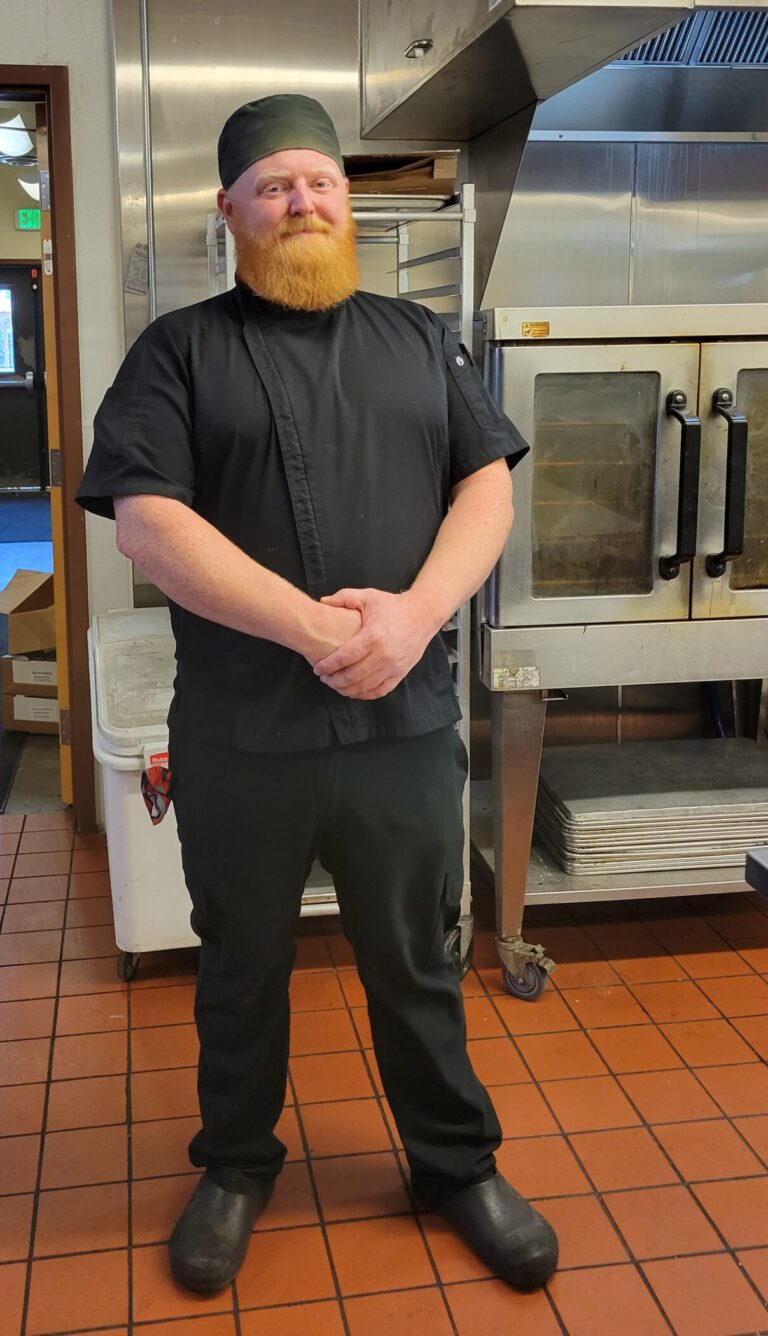 We often compare the Poverello Center kitchen to a game of “Chopped.” Just like the popular TV challenge show, our kitchen team starts each day with a haul of seemingly random ingredients, the vast majority of it donated from local grocery stores and community partners. Our job is to parse through the food we have and create a filling, nutritious meal that also tastes delicious.